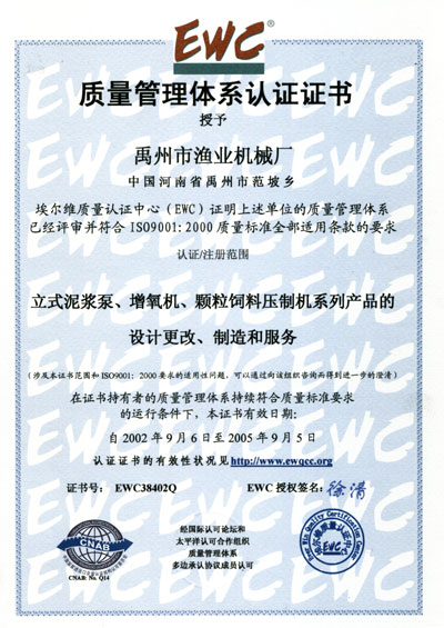 ----幾年來,我廠本著靠科技求發展,靠信息求市場,靠質量求生存,靠管理求效益的治廠方略,大膽進行改革,建立起一套全新的運行機制。2002年9月已通過ISO9001:2000國際質量管理體系認證;在2000年12月榮獲河南省科學技術廳“科技企業證書“;2001年7月獲河南省科學技術廳“高新技術產品證書“;2001年12月獲河南省科學技術廳“高新技術企業認定證書“;曾獲河南省鄉鎮企業名牌產品稱號。